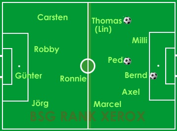 Wir hatten bei unseren Angriffen plötzlich unglaubliche Räume und konnten diverse, gefährliche Konter fahren. Die meisten wurden vergeigt, aber dann konnte Bernd nach Vorarbeit von Milli die Führung erzielen. Was für ein Gefühl, und dann die Gedanken an vergangene Zeiten, kann die Führung gehalten werden? Noch 15 Minuten....und weitere Konter, Chancen für uns und: meist vergeigt. Unglaublich wie wir uns beim Auslassen der Chancen übertrafen. Bis zu dieser Ecke, schön reingebracht und Pat knallt das Ding rein. 3 - 1, dass war´s! Eine Chance noch für Allianz, einige für uns und dann - Abpfiff, Sieg, Hurra!