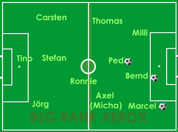 So erhöhte Pat mit einer Einzelaktion auf 2:0. Eigentlich hätten wir den Gegner danach regelrecht wegballern müssen, so viele klare Torchancen wie sich in der Folge ergaben. Aber unsere Angreifer schienen den Gast verschonen zu wollen. Selbst ein Elfmeter wurde verschossen, wenigstens beseitigte Bernd im Nachschuss mit dem 3:0 alle Zweifel, wer die Punkte kassieren würde.