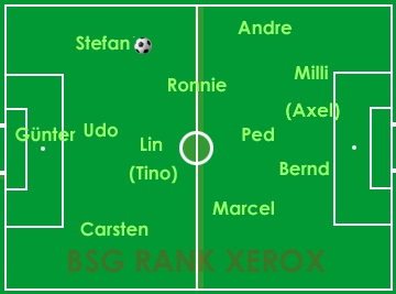 Mit einer Standardsituation gelang uns noch vor der Pause der Ausgleich. Stefan war in einen weiten Flankenball von Marcel hineingelaufen und verwandelte aus ca. 8 Metern per Dropkick.