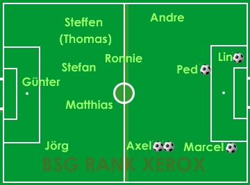 Ohne Bernd und Milli bildete Lin diesmal die alleinige Spitze. Das Spiel lief jedoch weitestgehend an ihm vorbei. Wenigstens gelang Lin der erlösender Treffer zum 5:3-Endstand.