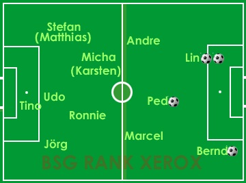 Mit Udo auf der angestammten Libero-Position, Ronnys Rückkehr als "Staubsauger" vor der Abwehr und Michas Unterstützung im zentralen defensiven Mittelfeld gelang es uns nicht nur, der Defensive etwas mehr Stabilität zu verleihen, sondern auch unser eigenes Spiel konstruktiver und kreativer zu gestalten, besser den Ball zu kontrollieren.