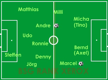 Etwa 20 Minuten lang gelang es uns, die Hausherren von unserem Strafraum fernzuhalten. Dann schlichen sich kleinere Fehler ein, die der Allianz zu einigen Torchanchen verhalfen. Wir verbuchten allerdings ebenfalls so manch gefährlichen Angriff. So hätte uns Marcel, der allein vor dem gegnerischen Schlußmann über das Gebälk zielte, in Führung bringen können. In einer weiteren Situation spielten wir nochmals Denny herrlich frei. Dieser legte uneigennutzig quer auf den eingewechselten Axel (kam für den früh verletzt ausschiedenen Bernd), der jedoch vor dem verwaisten Tor den Ball nicht richtig traf, sodass sein Schußversuch von einem Verteidiger noch geblockt werden konnte.